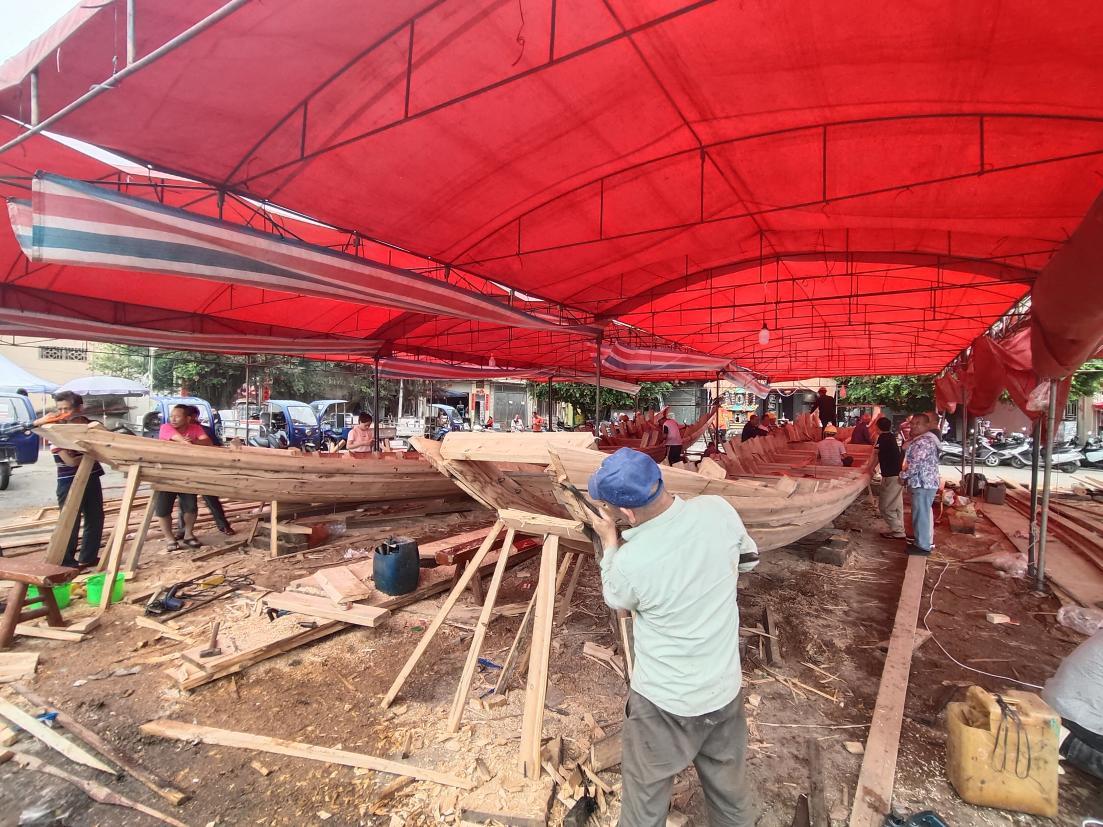 如今,三艘龙船预计于5月中旬完工,随后将在瀛江进行试水及适应性训练。端午节当天,三大社还计划举办友谊赛,每艘龙船可容纳 60-80 人,届时将以“情牵千里”重续传统风尚。当三大社龙船端午竞渡时,鼓点将与潮声共鸣,进而唤醒甲子人代代相传的美好记忆;如此,就让我们共同期盼甲子瀛江再现“群龙闹海”。